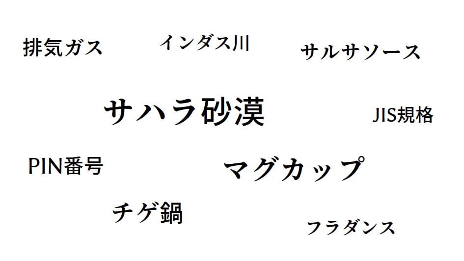 これらを厳密に弾くとリストがなくなってしまいそうなので、語源を重視してリストに残しました。要するに、「ああ、それはマグカップみたいな単語だね」と雑学として披露できるような知識を集めたということです。