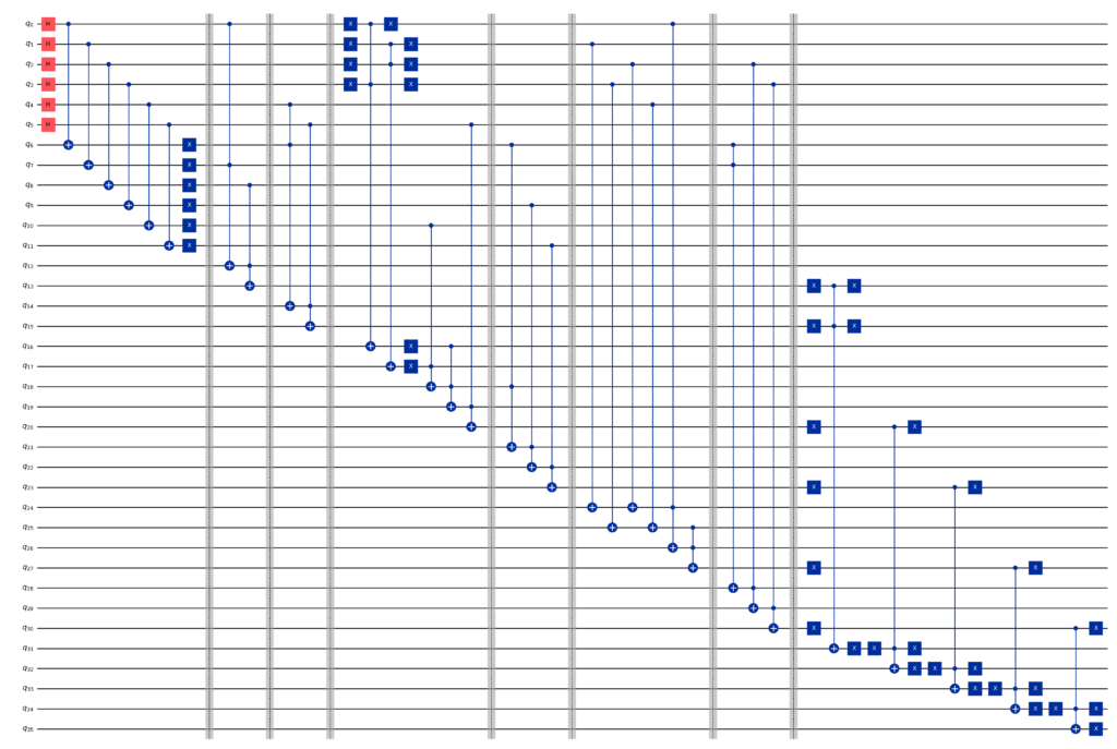 前回の量子回路の続きです。6ブロックの判定をORして総合判定ビットとします。
