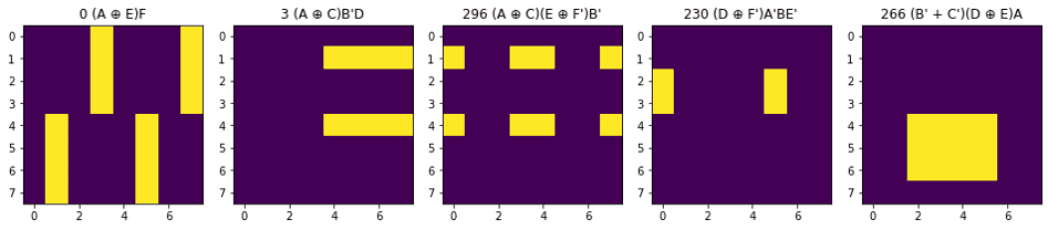 OR(13, 18, 19)「(A ⊕ C)B’」は再利用しています。再利用も考慮してあえて長い式を選択する戦略もあるんですよね。完全自動探索ツールにするならそこまで考慮したいですね。