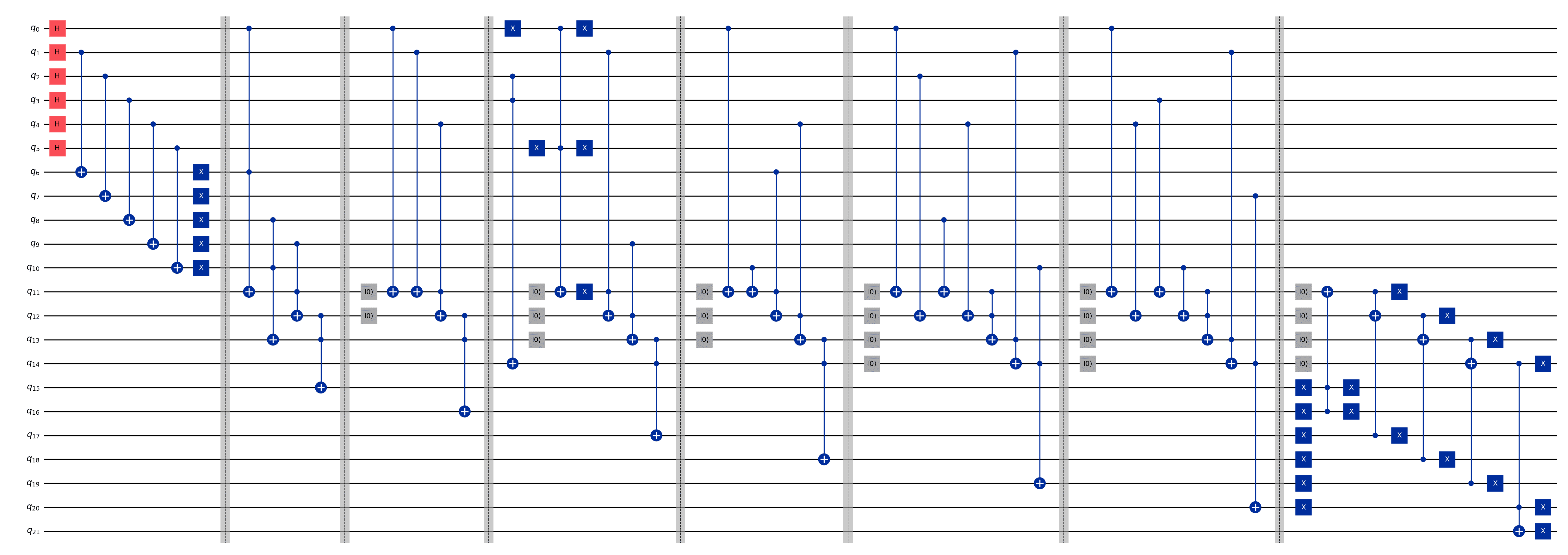 コードはこんな感じ。たったの22量子ビット。「D’F’」「CD」は再利用しています。