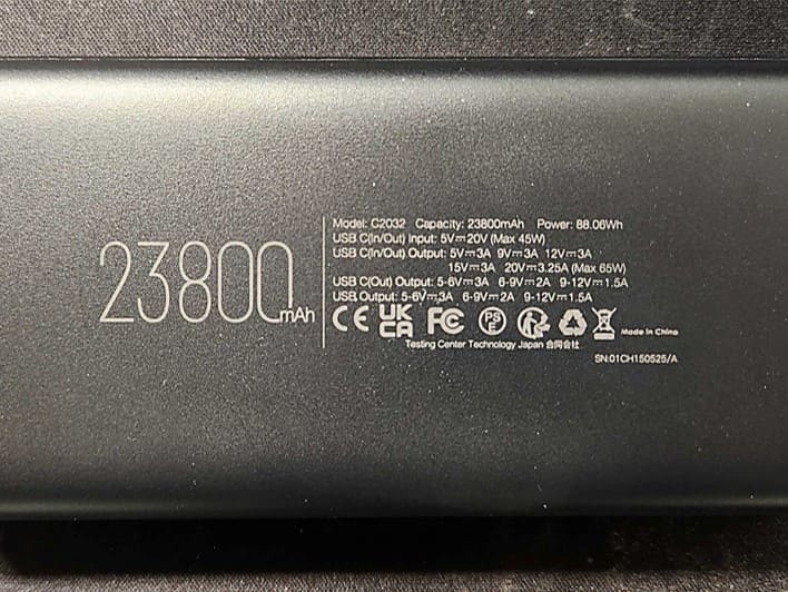 まず、モバイルバッテリーの容量(「容量」という名前が付いているが人類はこれに適切な名前を付けられていない)が23800mAhです。
