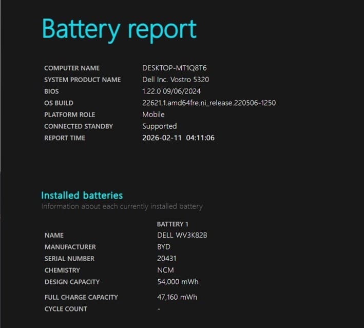 私のノートPC「Vostro 5320」のバッテリーは54Whから少しヘタって47.16Whです。
