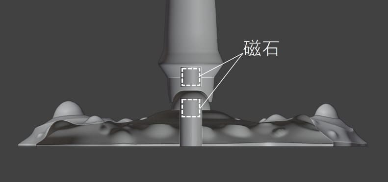 ウニの棘と殻をつなぐ「キャッチ結合」の模型を3Dプリンターで作成しました。模型の内部に磁石を埋め込むことで、実際のボールジョイントの動きを再現します。